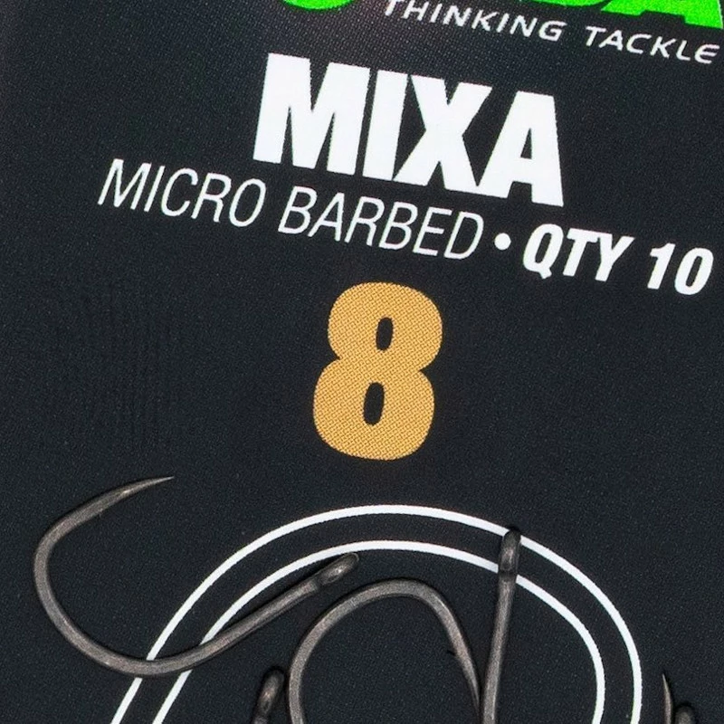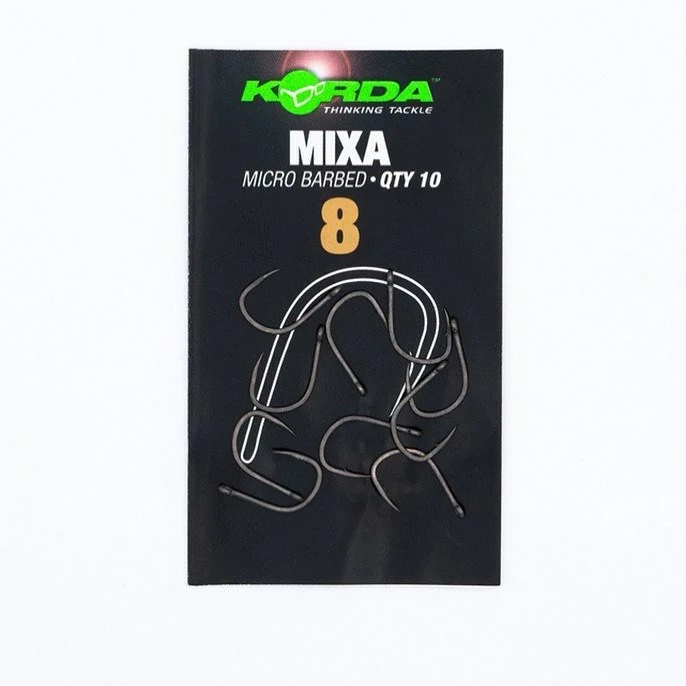Korda’s Mixa hook pattern has been specifically designed to fool even the shyest feeding carp on the surface. With a short shank, wide gape, beaked offset point, they truly are made for the job. Manufactured from a strong and light carbon steel wire. and with a PFTE coating. They’re perfect for all your surface and zig fishing requirements.