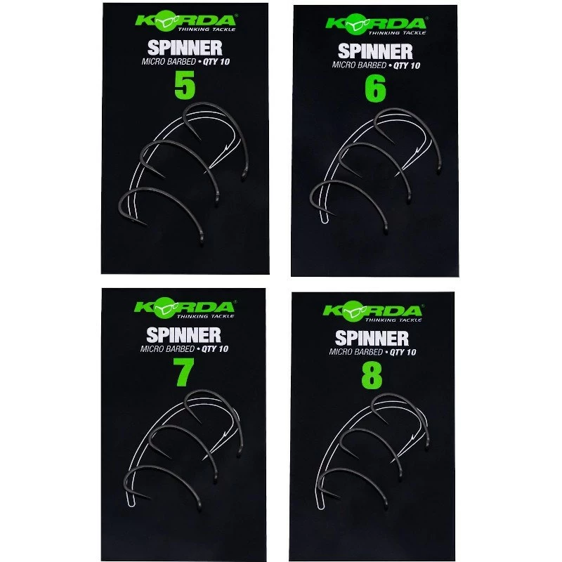 Korda Spinner Hooks in barbless, based on their best selling Kurv shank pattern with a further extended shank and offering the same sweeping curve.  Also featuring an in-turned eye, eradicating the need for shrink tubing