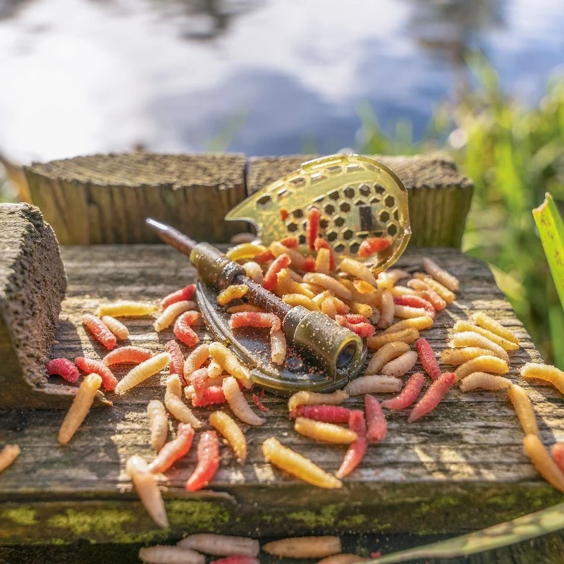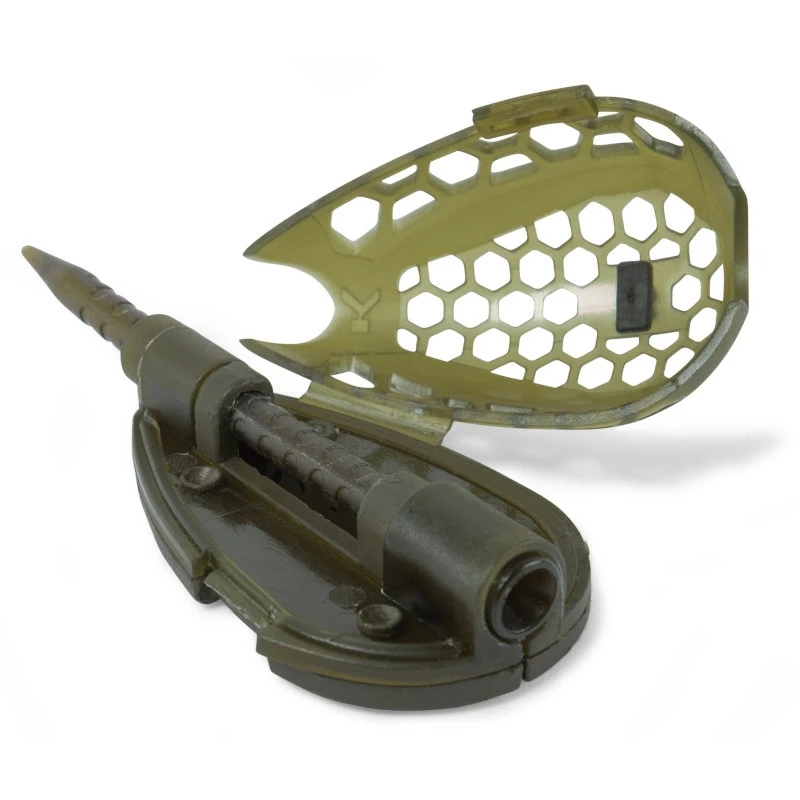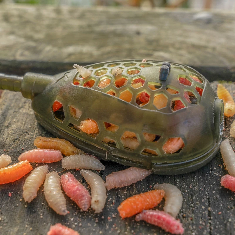 Korum Camo Grub Feeders take Korums popular grub feeder to the next level. Featuring an interchangeable stem system for quick changes and a simple clamshell loading procedure. They also have a special rubber line clip on top of the feeder that allows you to pinch and hold your hooklength in place directly above the bait wriggling out. A feeder that’s effective on natural and commercial venues alike, and great for targeting early season tench.