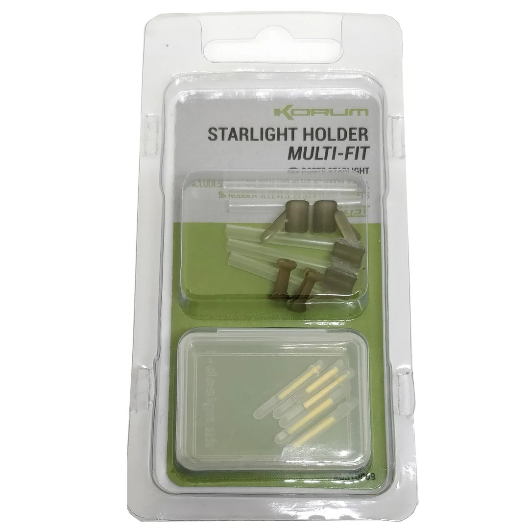 The Korum Starlight Holder offers visual bite detection at night on your rod tip. It can be fitted to the majority of rod tips thanks to the specially designed inner sleeve, which gives versatility and added grip for a wider range of tip diameters. Supplied with everything you need, plus 5 Starlites to get you started.