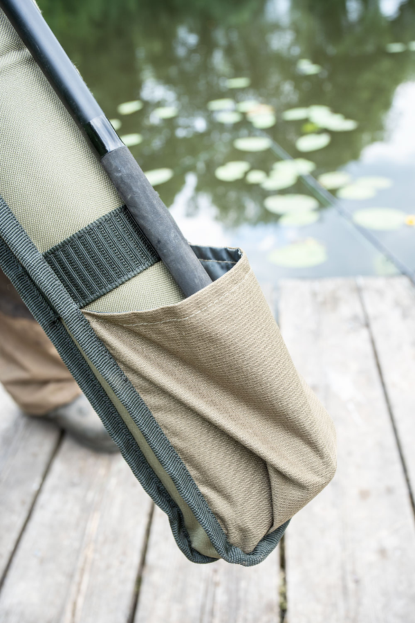 Designed with a chunky zip running the full length of the bag and with a handy spare outer pocket and corresponding velcro strap to locate and secure your landing net handle, or even a spare setup.