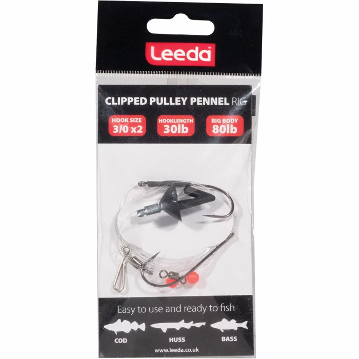 Leeda Clipped Pulley Pennel rigs, made using high quality hooks and components and offering superb quality and functionality. A go to rig of choice for targeting a wide variety of species over rougher ground.