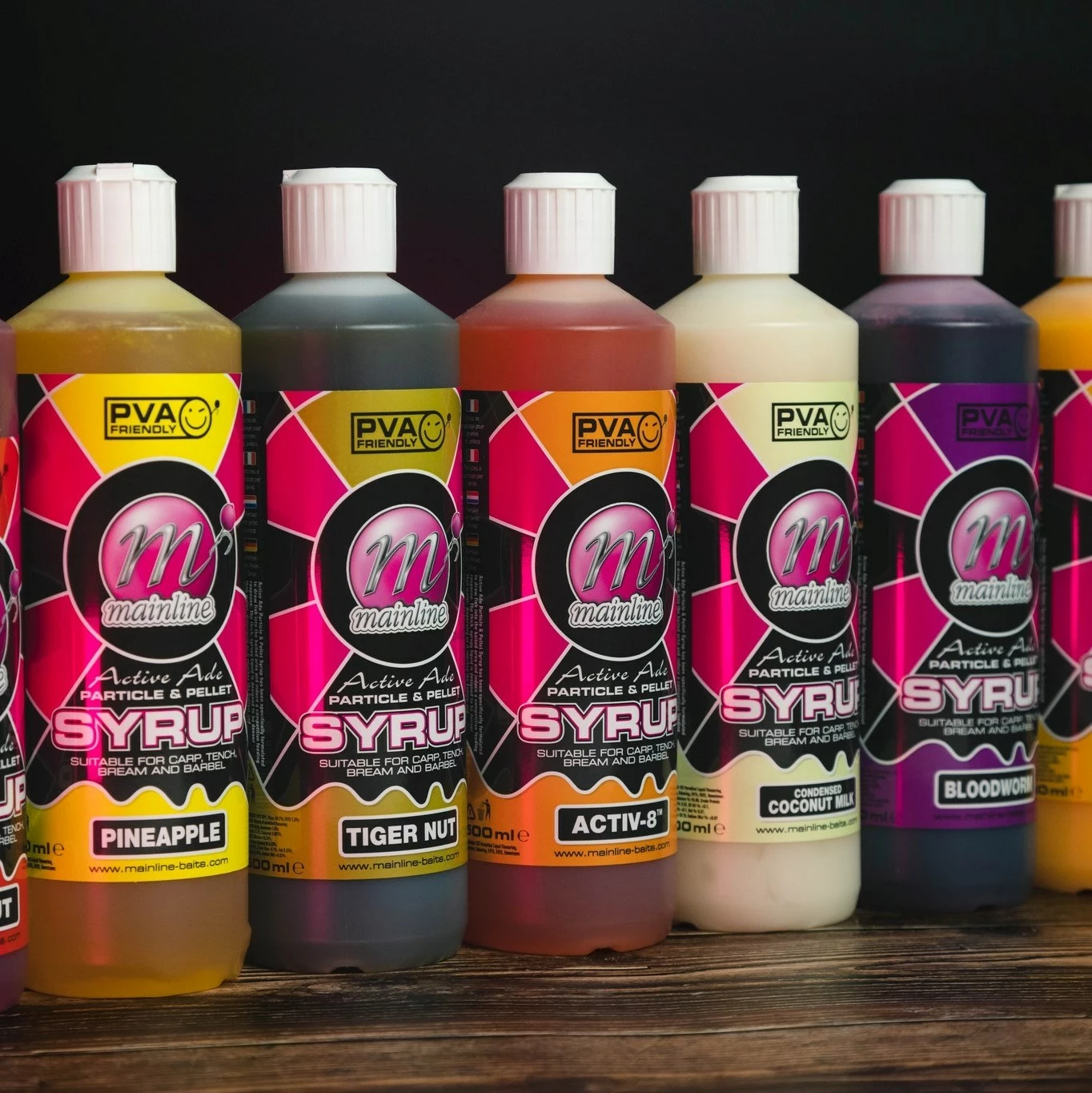 Mainlines Pro-Activ Particle & Pellet Syrup has been specifically formulated to draw fish into the baited area and induce a competitive feeding response. The thick, syrupy liquid is designed to be denser than water, dispersing as it reaches the bottom and spreading a highly attractive cloud back to the surface. This ensures that fish are attracted from all levels in the water column and from distance too. Pro-Activ Particle & Pellet Syrup contains liquid palatants, aminos and natural sugars all of which are highly effective and well proven feeding stimulants. The Syrup is convenient, easy to use and completely water soluble. Designed to boost the attraction of prepared particles or pellets and to be a highly effective groundbait additive. Suitable for carp tench bream and roach.
