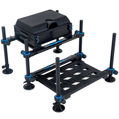 A great choice if you don’t need to carry everything with you on commercial venues. Ticking all the requirements for a small form sturdy strong and lightweight tackle transport and seating solution. The simple square frame design gives you a solid reliable platform, with 36mm legs provide that extra layer of stability. They’ve also added a fully waterproof PU moulded pole seat, supported by its own aluminium support frame, instead of your trays taking your weight when you sit down. The sliding footplate is fully adjustable and can be removed completely if needed.  Â