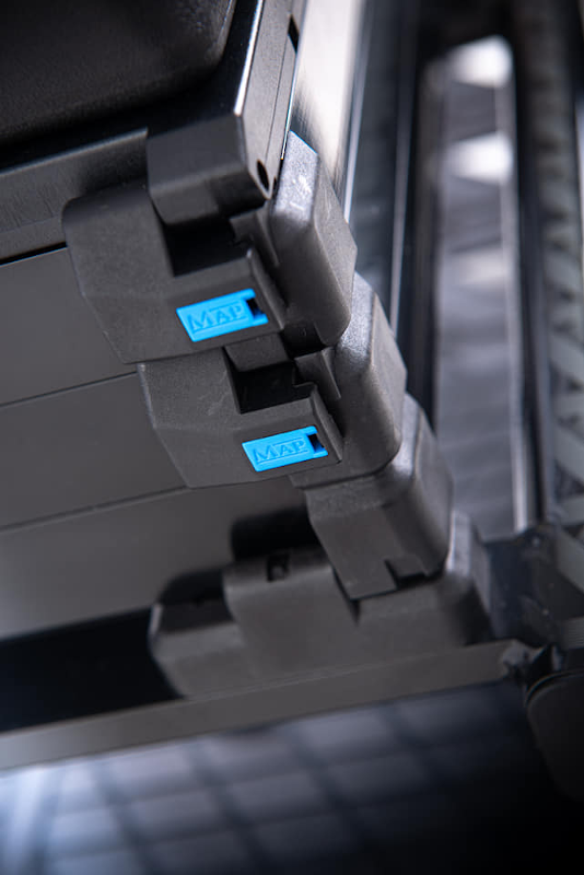 With its standout sleek design, and high-quality lightweight aluminium ‘Zed’ frame design. The latest edition features a number of standout improvements over previous models, 30mm legs with a new improved stacking system that allows you to mix and match deep and shallow trays in any order you choose. A new and improved fully waterproof PU moulded pole seat, which features an aluminium support frame taking your weight when sat on your box, instead of your trays. The sliding footplate system has now been made fully removable, to make cleaning and transport easier.   Â