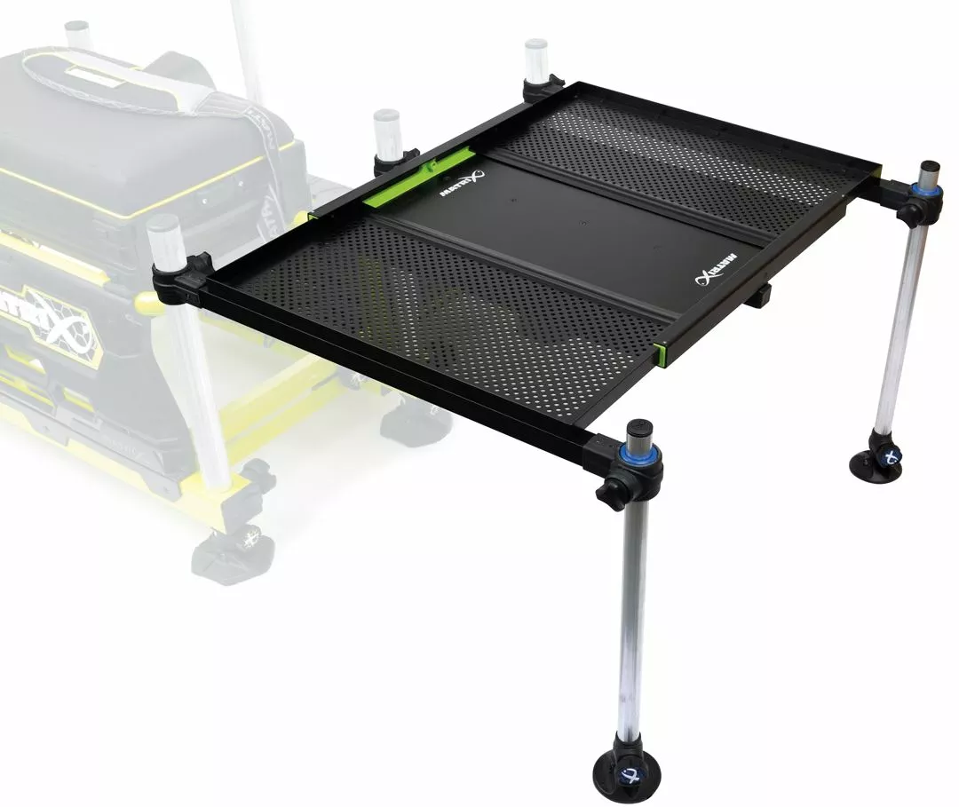 - Pre-supplied with two telescopic 25mm support legs with mud feet for adjustable stability as well as the suitable inserts. The standard model is capable of comfortably holding eight 3 pint bait boxes, whilst the XL version can hold a mammoth 12 3.3pint tubs. These can even be fitted to the rear of the box for storage when fishing.