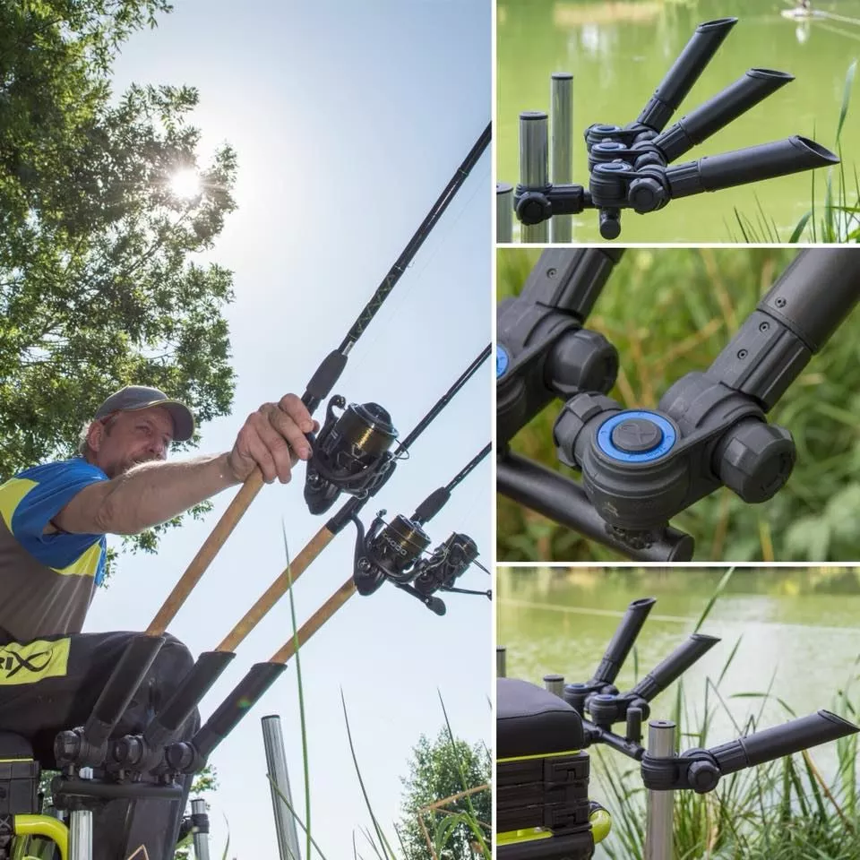 - Can accommodate up to three fishing rods, it can be adjusted both horizontally and vertically, giving you more flexibility to fish from a comfortable position. The fixed main knuckle gives you that extra strength, with the soft moulded insert really protects and grips the butt well for a stable setup.