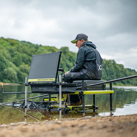 Give your baits and groundbaits the professional treatment with these quality lidded feeder trays. A large capacity box with flight case like protection on the corner edges that opens up to reveal a 62 x 42cm inner tray with a shelving system that opens above priding storage for extras like disgorgers and rig bits. They have one knuckle at the front for attaching to your box or platform, plus two additional extending legs that provide stability on the far corners.Â