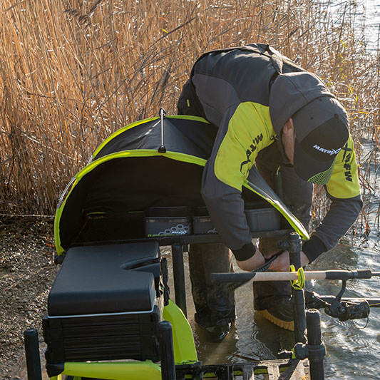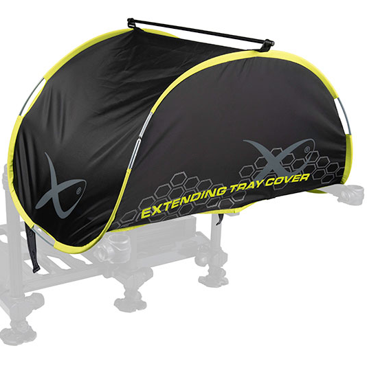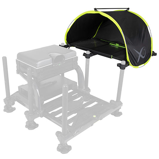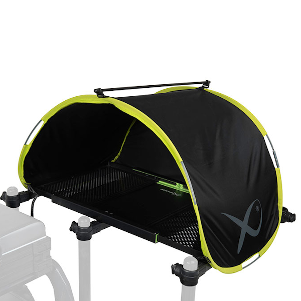 Designed to fit both of their extending side trays to shelter your baits and bits in bad weather. With a simple to use pop up tent style construction, you simply open the bag and they spring into shape. You then secure them firmly in place with webbing tension straps, there’s even a bivvy style tension bar that helps it keep shape in more windy conditions.