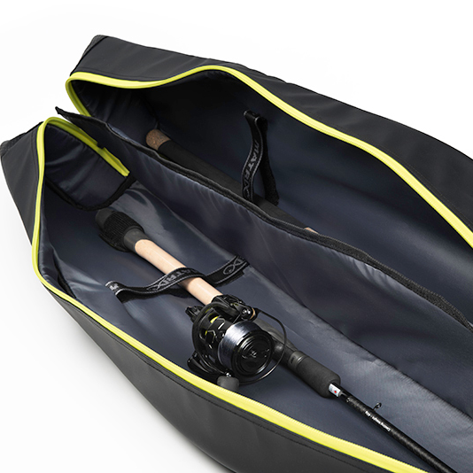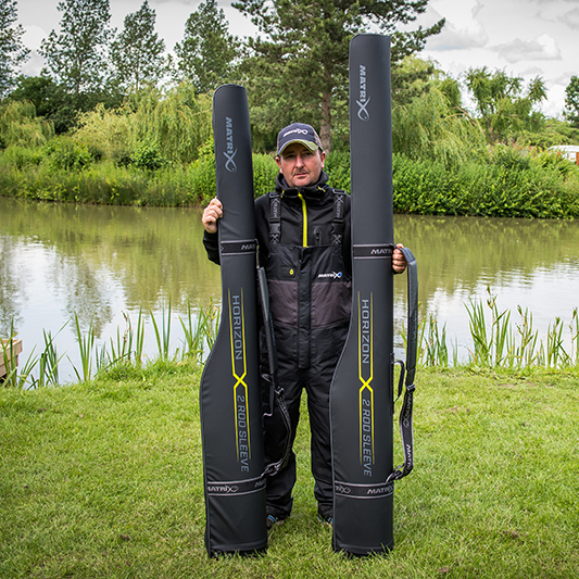 A high quality rod sleeve from Matrix designed to take a pair of broken down rods padded and protected to the bank. With two sizes available a 1.75m ideal for rods of up to 11ft, plus a 1.95m option perfect for rods of up to 12ft. Each has a rigid PE board reinforcing the waterproof PVC coated outer fabric, giving them a more rigid look. With a secure inner with a cushioned divider and secure locating points for your rods. They come with a pair of neoprene carry handles, plus an additional padded shoulder strap.