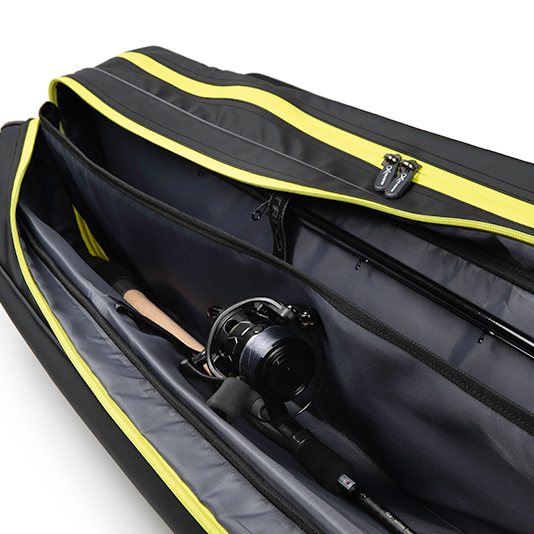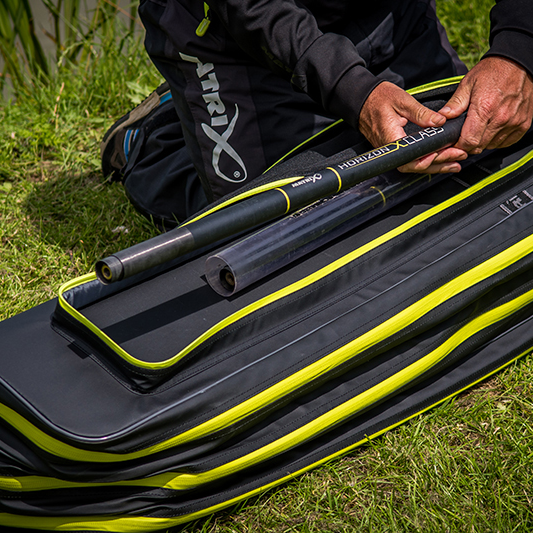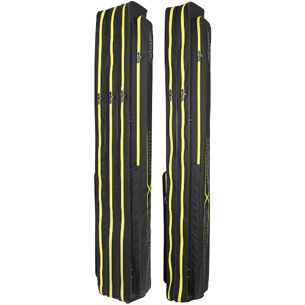 Two rigid rod holdall designs to give your valuable kit that extra bit of protection to and from the bank. With fully padded oversized compartments that allow you to carry either 4, or 6 rods, depending on the model you choose. Each has both a generous outer pocket for housing your landing net handles and brollys, plus a smaller rigid pocket ideal for taking your spare feeder tip sections. Manufactured from a super tough PVC coated fabric, and fitted with neoprene carry handles plus a padded carrying strap.