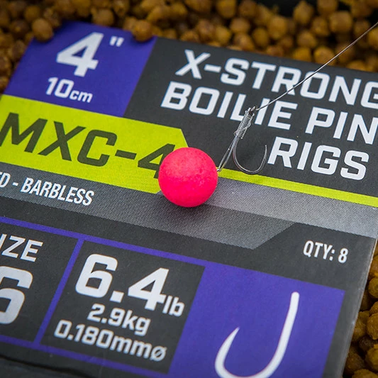 Super strong rigs from Matrix designed to handle large commercial carp. Featuring their MXC-4 ultra-strong wide gape PTFE coated hook pattern combined with Matrix power micron mono. Finished with a durable boilie pin ideal for boilies, waters and dumbbells.