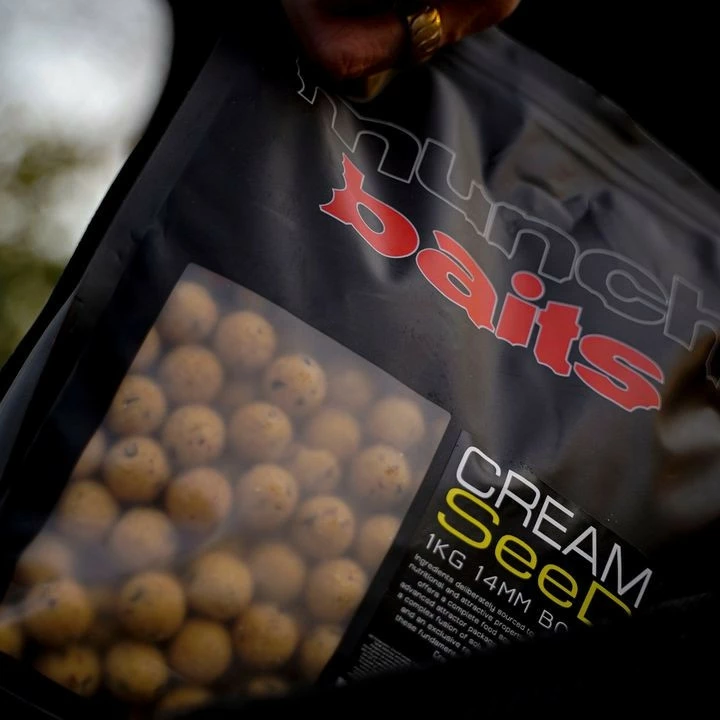 The Munch Baits Cream Seed range contains a combination of milled pulses, seeds and cereals combined with an exclusive refined milk protein. A balanced bait developed to offer nutrition and attraction throughout the year. They perform really well straight out of the pack, or glugged and boosted with the matching Cream Seed liquid food to take that flavour profile to the next level.Â