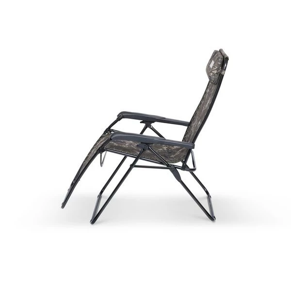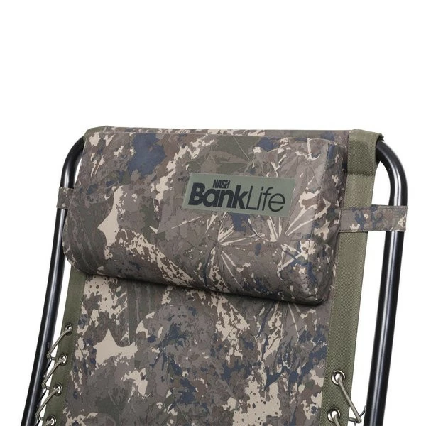 The Nash Bank Life Hi-Back Lounger, a classic reclining reclining chair with an extended higher back. With a mattress that reaches down to your feet and a sliding camo peachskin pillow included. You adjust the back by simply lifting the arms. Ideal for leaning back and getting properly comfortable when your out on the bank.Â