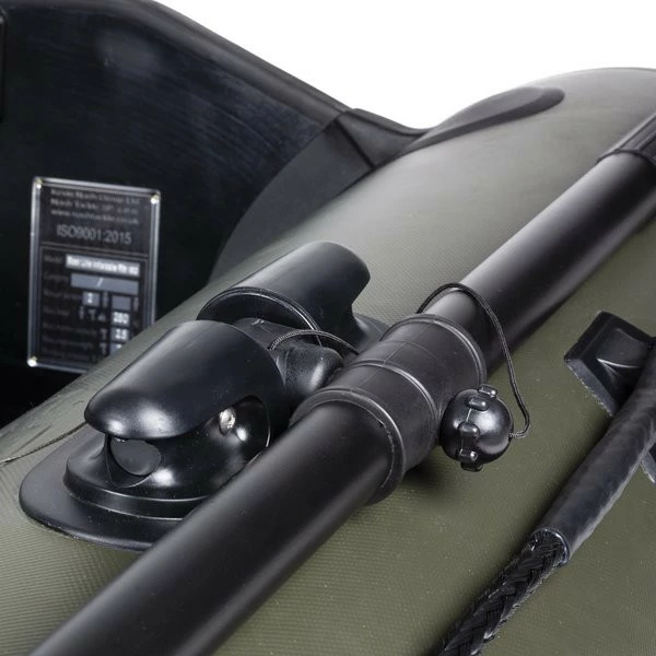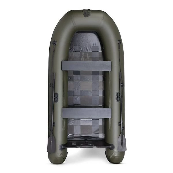 The Nash Boat Life Inflatable Rib 320, the largest boat available in the current Nash range with capacity for up to four people. Manufactured with toughened thick 0.9mm PVC bases underneath 0.7mm tubes. With carbon fibre reinforced decking slats that protect the floor when your clambering in and out. Further reinforced with extra think material on the base side walls to prevent any damage when you’re landing onshore. The package includes a set of black lightweight aluminium oars, a black wooden seat plus a foot pump and puncture repair kit. Everything you need to get in the water.