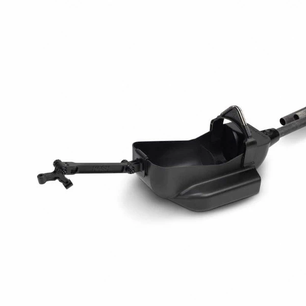 Following on from the success of the original Bushwhacker baiting pole that took the carp world by storm. This latest version now comes with a special mounting designed to take a deeper pro sonar unit. Enabling you to get a true picture of what’s going on in your chosen swim. There’s also an attachment point for you Moonshine multi lite so you can ship out with confidence in complete darkness. If you want to check the swimbed itself, you can thread a lead through the leading bridge adapter upend the spoon and retrieve and drop the lead to get an idea of the terrain.