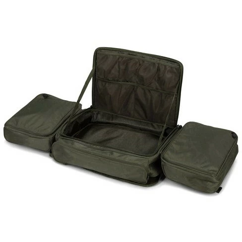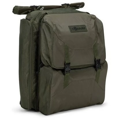 The Nash dwarf ruckall is a modular style compact tackle storage solution that folds neatly together into a backpack. With one full sized main compartment, with a zipped lid and mesh compartments underneath. Plus two additional half sized compartments, waterproofed so you can unfold them on wet ground. There’s also two full length side pockets to house rod pods and banksticks etc. Fitted with a pair of comfortable sculpted padded shoulder straps. Â