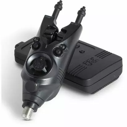 Nash R3+ alarm and receiver presentation sets. Available in two rod and three rod options and featuring a number of upgrades and improvements to the best selling original design. The team at Nash have kept the iconic look and feel of the over popular originals while packing in the very latest critically acclaimed Siren Speed Sensing system. A unique technology that actively screens and filters out false indications from wind, undertow and drifting weed. Each alarm head has a simple push button function that allows you to switch between different colours to match the rest of your setup. An MMCX connector allows you to attach and power Siren night glow bobbins and swing arms. The receiver will now sync and replicate the exact tone you’ve set on your individual alarm heads. They also include a ‘last event’ recall function that allows you to see exactly what your alarm was doing while you were struggling to get out of your sleeping bag.Â