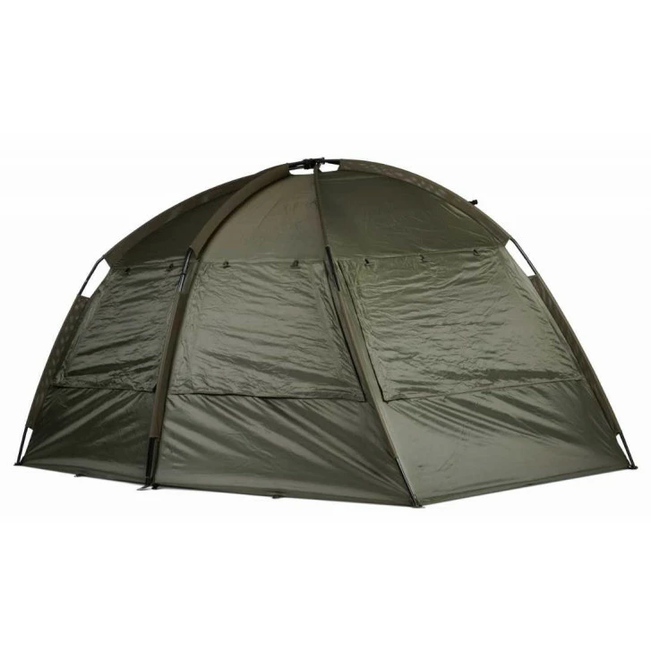 A lightweight sturdy range of shelters that are super quick and easy to put up. The revised and updated XL Pro edition carries a larger footprint to the standard size and includes number of design improvements over the bestselling original. Now manufactured from dark green Aqua Sense hydra, a fabric with a 10,000mm hydrostatic head, twice the rating of the original. The central boss has also been upgraded and is now smaller and stronger than ever. The front of the shelter now features an improved angled rain peak and tension bar for better water run off in bad weather conditions. When the weather is good, they have four individual mozzi mesh panels that can be opened to give excellent ventilation. An altogether brilliant design that will perform in a variety of weather conditions.