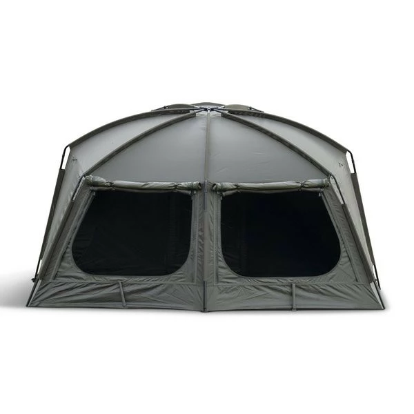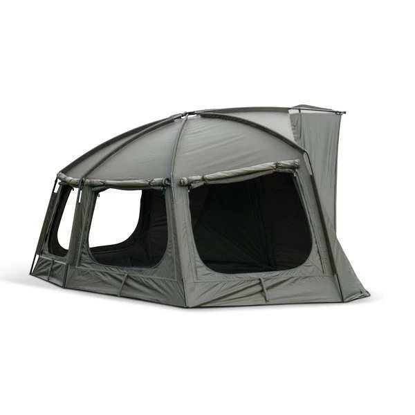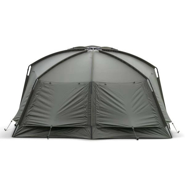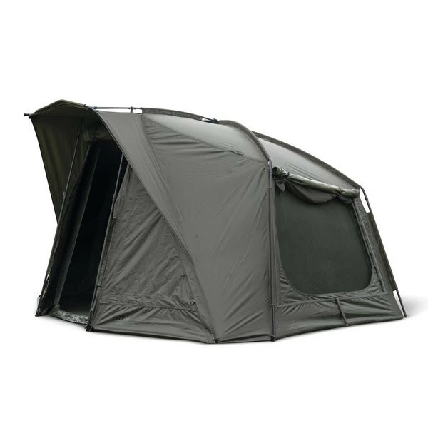 The latest updated edition of the Nash T2 Pro bivvy. A design that offers you improved headroom inside, plus a bigger entrance that also gives a better view of the water in front of you. The T2 version maximises the space available inside to comfortably fit two bedchairs, plus your kit and accessories inside. Featuring an ultra quick assembly time, with a super strong central boss holding everything firmly in place. They come complete with an inner mesh capsule, with an integrated groundsheet that can be removed if required. With a multitude of different alternative ways to configure the door and side panel options its a great shelter that gives outstanding performance in the height of summer and the depths of winter.
