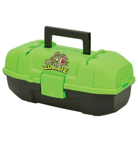 An eye catching green and black tackle box , with a prominent zombie logo on the front. Equipped with a super simple easy to use clasp and has one removable tray inside. Just the thing to spark an interest in fishing that will last a lifetime