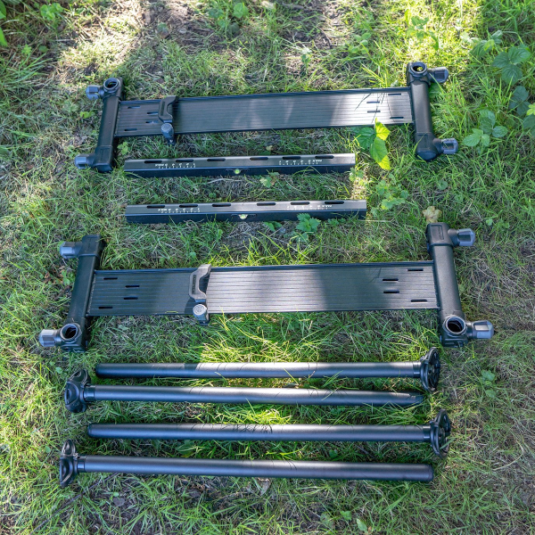 Super stable and simple to use, the Absolute platform gives you everything you want in a reliable platform. Adjustable to fit most seatboxes on the market. Manufactured with clever design additions like threaded end caps on all four legs, so you can screw in any standard threaded accessories. Plus twin spirtit levels that take the guesswork from getting truly stable. The entire frame also has strategic holes drilled to allow water in when you’re setting up, and drain again easily once you’re done.  Â