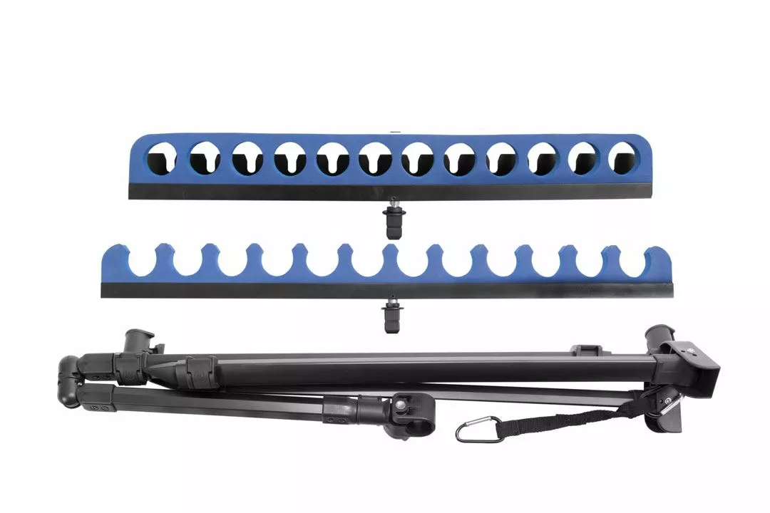- The length and height are both adjustable by using the Quick Release Cams and also included as standard is an adjustable stability strap which is designed to clip on to a heavy weight such as a groundbait bucket, this extra support gives you additional peace of mind in extreme weather conditions. Supplied in a padded carry case as standard and compatible with leg profiles up to 36mm in diameter.