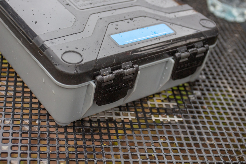 With a TPE gasket running around the inside of the lid, and two catches securing it in place. This is super secure and sealed against the elements giving you peace of mind the contents will arrive on the bank with you in one piece!