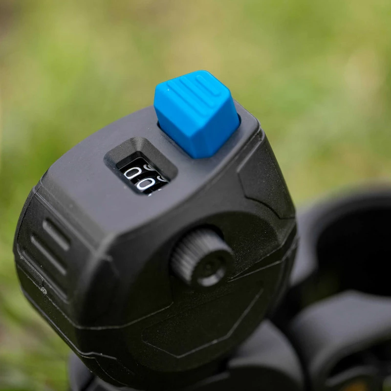 A must have item for the modern day competition angler helping you keep an eye on weights in your keepnets. Fitting directly and securely onto your leg system, with a large blue button on top and a reset switch on the side. This simple design will fit onto a multitude of leg systems and footplates coming supplied with a range of inserts.