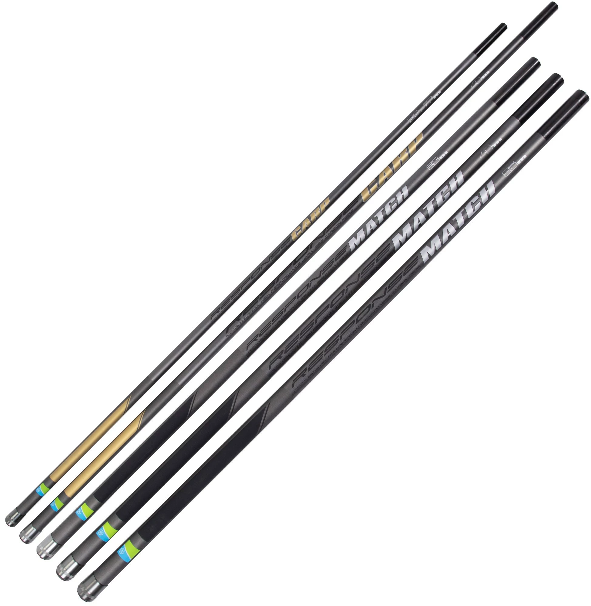 - The trio of match models are super slim and lightweight – perfect for natural and commercial venues. They’ve 1m increments for extra versatility. The stress points are also reinforced, along with strong pinned threads and rubberised butt section grips.