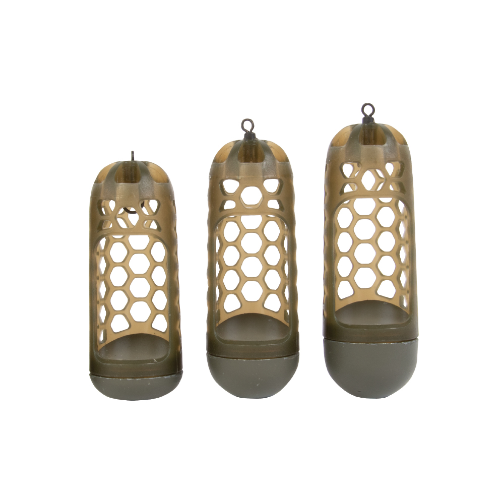 - Designed for getting as much bait in your swim accurately, as fast as possible. Thanks to the open side, these empty in double quick time. Available in caged and solid versions with a choice of weights. These will cover you for a wide variety of fishing situations on both still and running water.