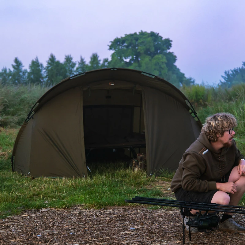 The Prologic C-Series Bivvy 2 Man, a lightweight portable bivvy from Prologic featuring a classic twin ribbed design with a simple speedy setup process. Arriving complete with a lightweight groundsheet plus a front panel and letterbox style door panel. They’re manufactured from a tough 190D fabric, carrying an 8000mm hydrostatic head. You get a large rear mozzi meshed window vent, a roll up peak, plus two Velcro rod holders. Supplied in a carry bag along with all the tension poles and pegs you’ll need.