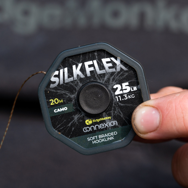 A super supple natural acting braided hooklength material. Ideal for adding into combi rig setups, or fished as a hooklength in its own right. Silky soft when immersed in water, this makes a great hooklength choice for approaching venues ith a stock of wary pressured fish that have seen it all before. Available in 25lb breaking strain 20m spools in camo.
