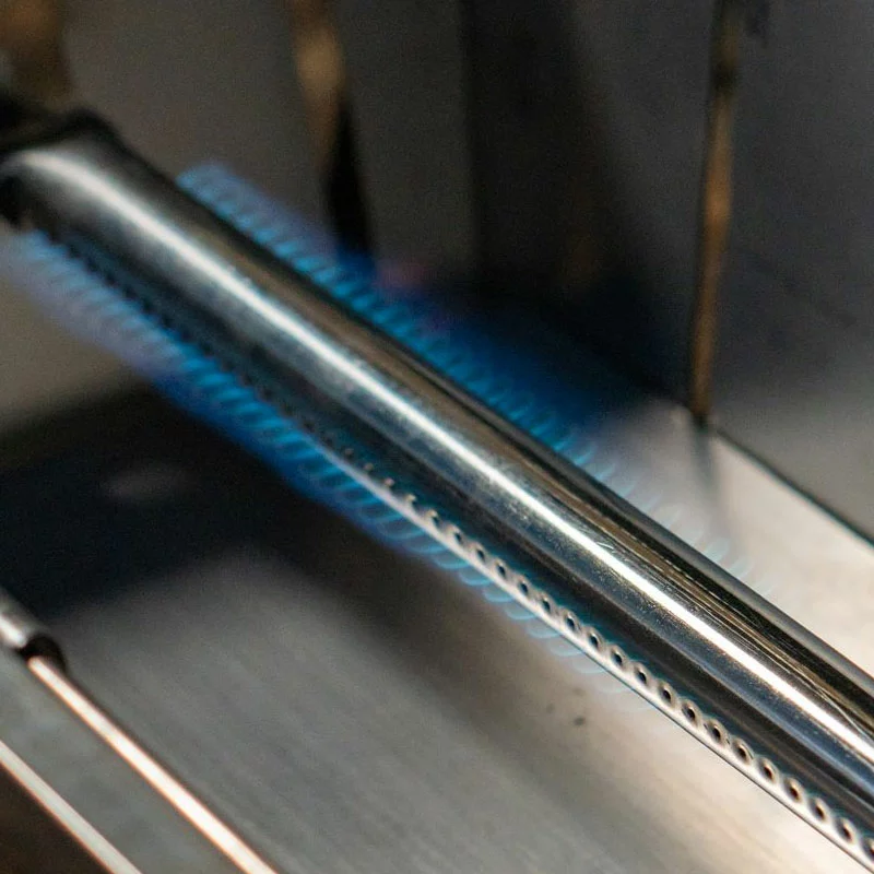 Includes an adjustable piezo and heat ignition and removable side table for laying out utensils or preparing food for cooking.
