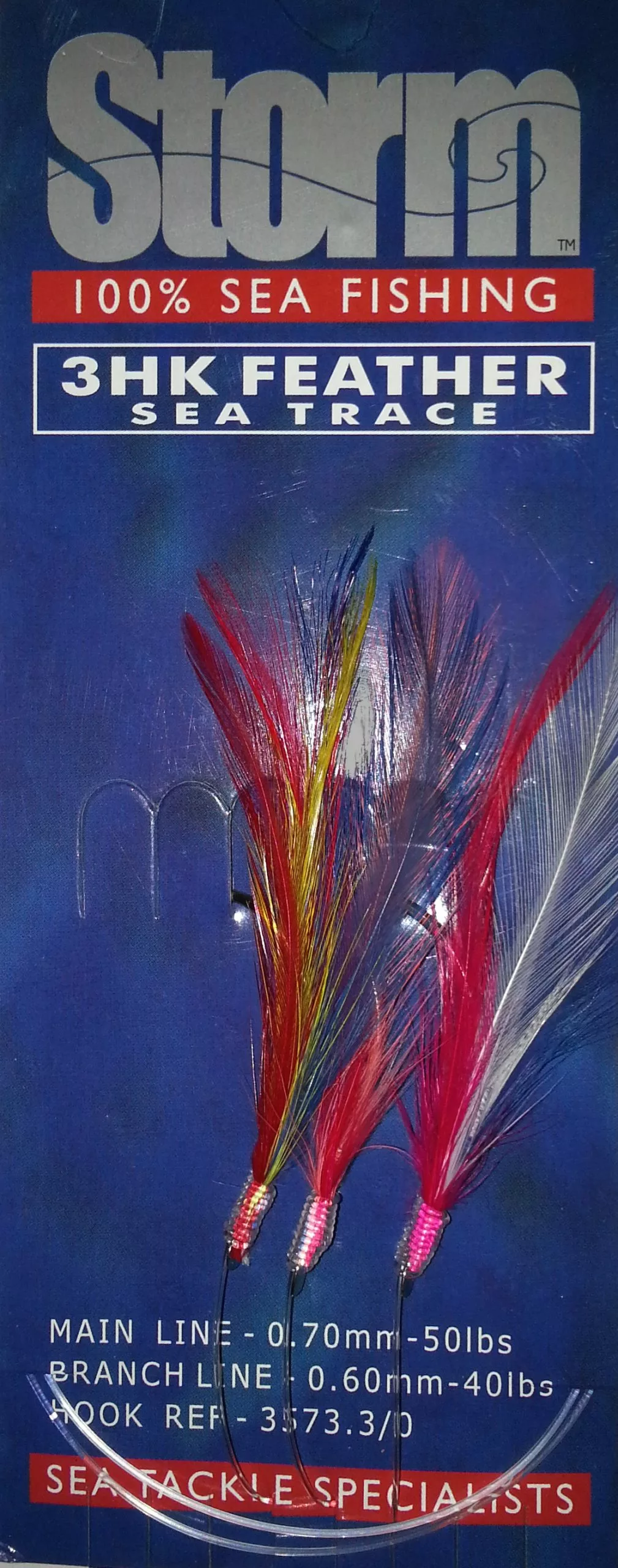 - Strings of 3 hook traditonal Mackerel Feather Lures tied on 3/0 hooks with 0.70mm (50lb) mainline and 0.60mm (40lb) droppers.