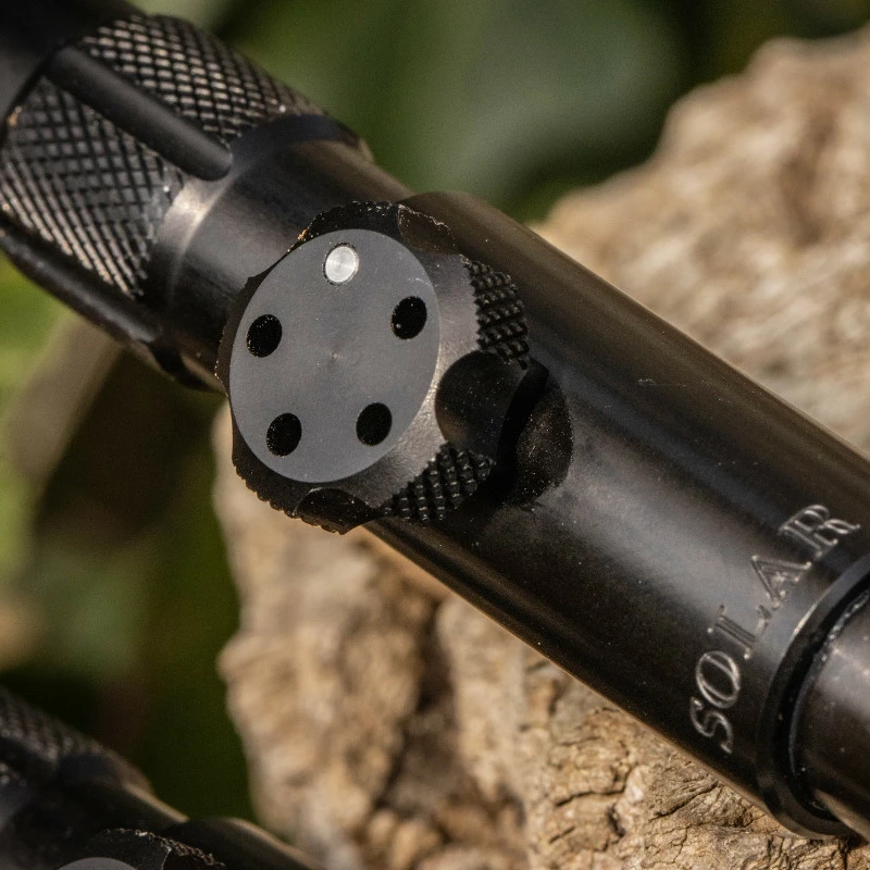 Smart black aluminium bankwear from the specialists at Solar. The Blacklight banksticks offer the ultimate strength versus weight ratio. With unique design tweaks like their sure grip 5 spoke knurling on the thumbscrews and collars. The thumbscrews also have Solars the Pro-Loc mechanism that prevents them falling out and getting lost. The business end features the stainless steel ground driver point that will chew its way into just about any bankside terrain.