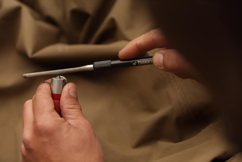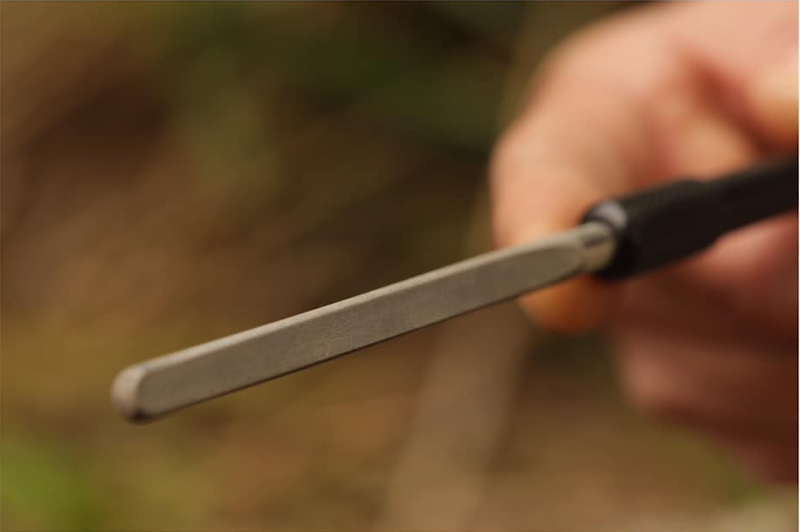 Great for reviving and adding life to used and dulled points and barbs. Featuring diamond grit encrusted flat and grooved faces for fine tuning and sharpening. The file itself locates inside the handle for protection when not in use.