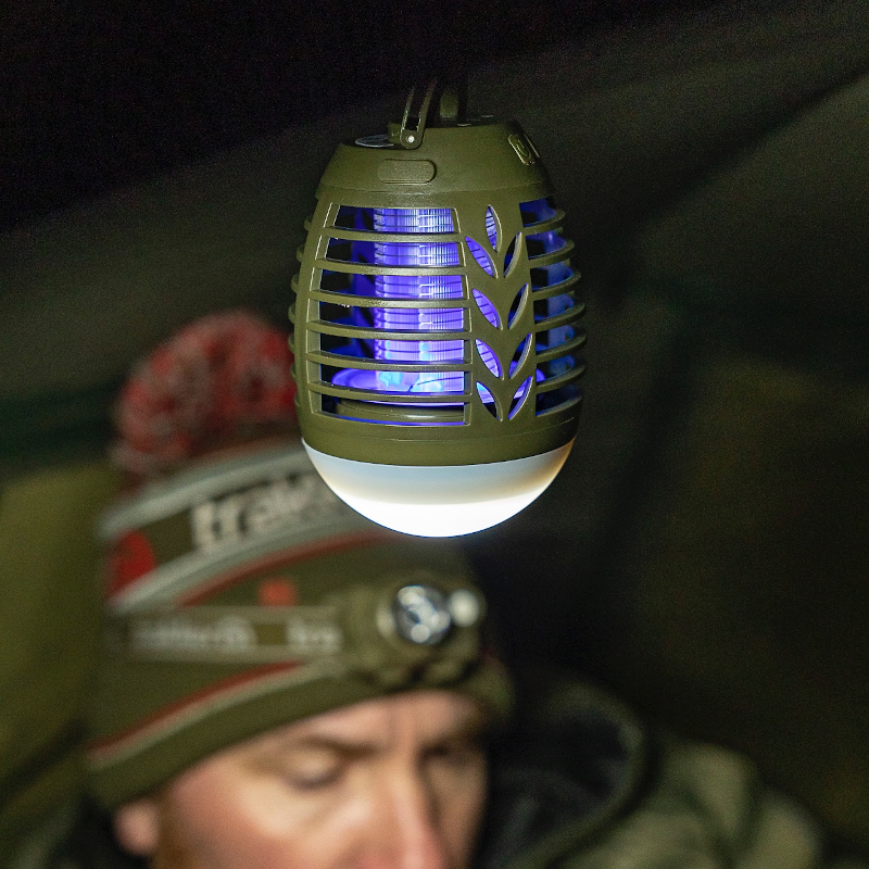 - Great for when those pesky insects are harshing your vibes out on the bank. This handy device zaps unsuspecting insects that sneak into your shelter, and even doubles as a lantern that can be easily hung from your bivvy as a convenient light source.