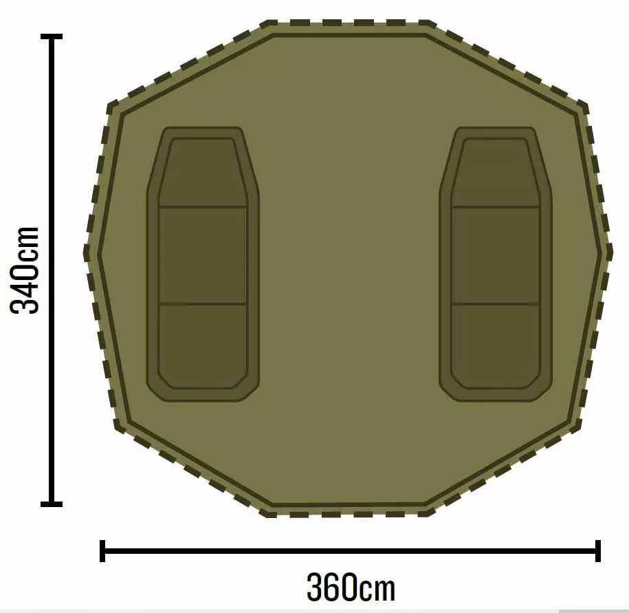 - Dimensions –Â (L) 360cm x (D) 340cm x (H) 185cm