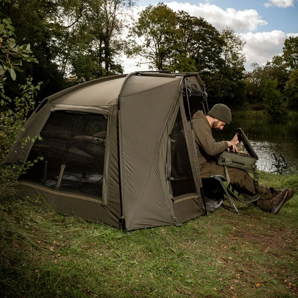 Trakker’s Tempest 100 Aquatexx EV features a patented design with adaptive ventilation technology, reducing condensation and keeping you dry inside. The main skin is manufactured from ultra waterproof hydrophobic Aquatex EV, carrying an impressive 25,000 HH rating designed to keep you dry in the very worst of conditions. Coming supplied with extras including a heavy duty groundsheet, tension straps, T pegs and 2 rod straps. This is great bivvy for anyone looking for a high quality lightweight, portable yet rugged one man shelter that’ll see you out on the bank in all weathers.Â