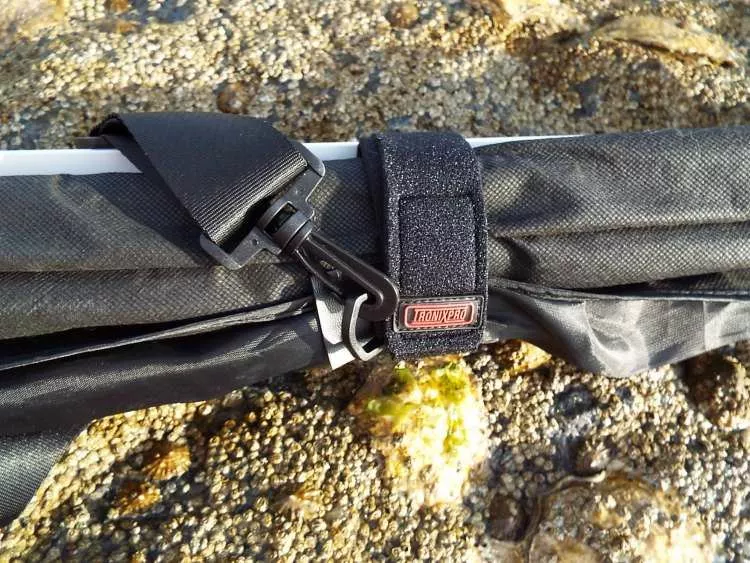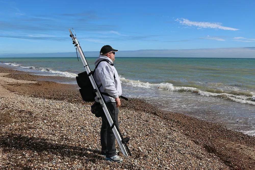 - This innovative sling allows you to strap your rod to the 2 securing points which you can then sling over your shoulder. This means you can free up both hands to carry other luggage or tackle. Perfect for transportation, this item can hold two beach rods and a rod rest.