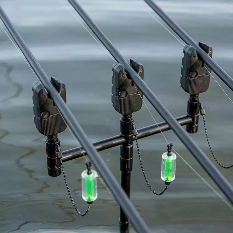 Wychwood Solace NTS ‘No Thumb Screw’ Banksticks, solid reliable aluminium bankwear with a 2BA thread so you can attach your bobbins and swingers direct. 16mm in diameter and available in 10 inch and 15 inch size options. They’re the perfect size for taking a buzzer bar for that close to the ground setup. With Wychwood’s own ergonomically designed knurling pattern on the height adjustment locking mechanism and also the alignment collars.